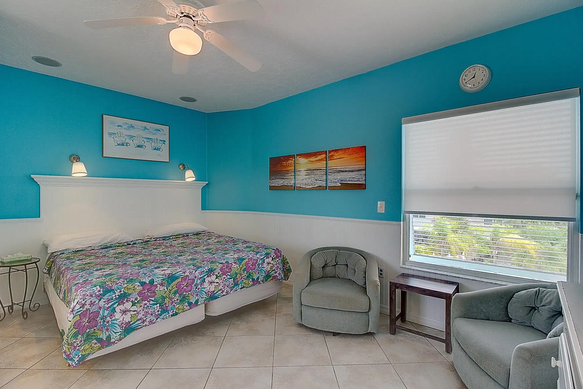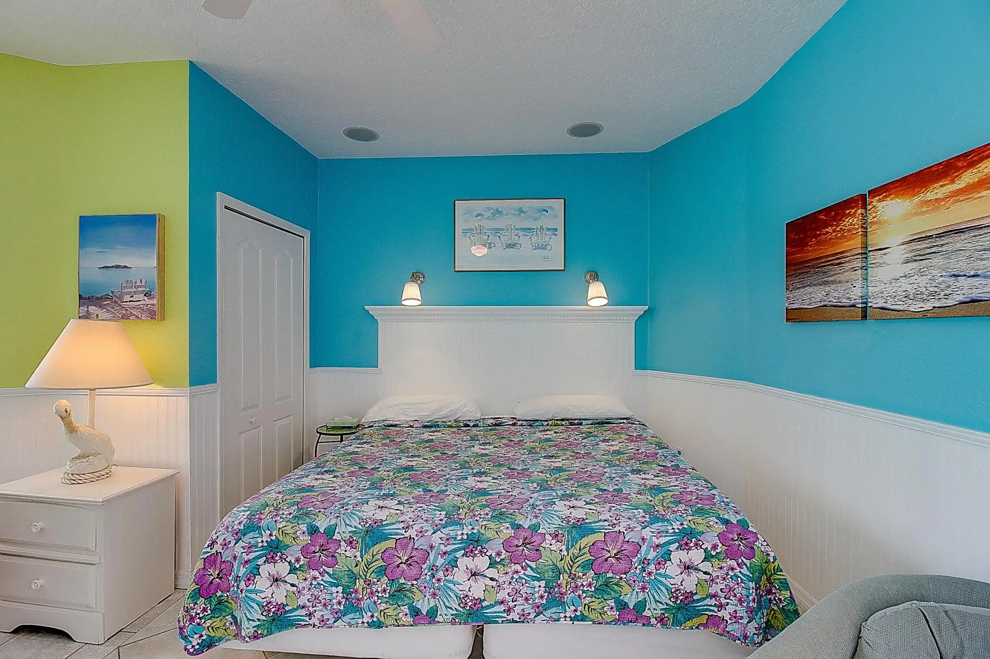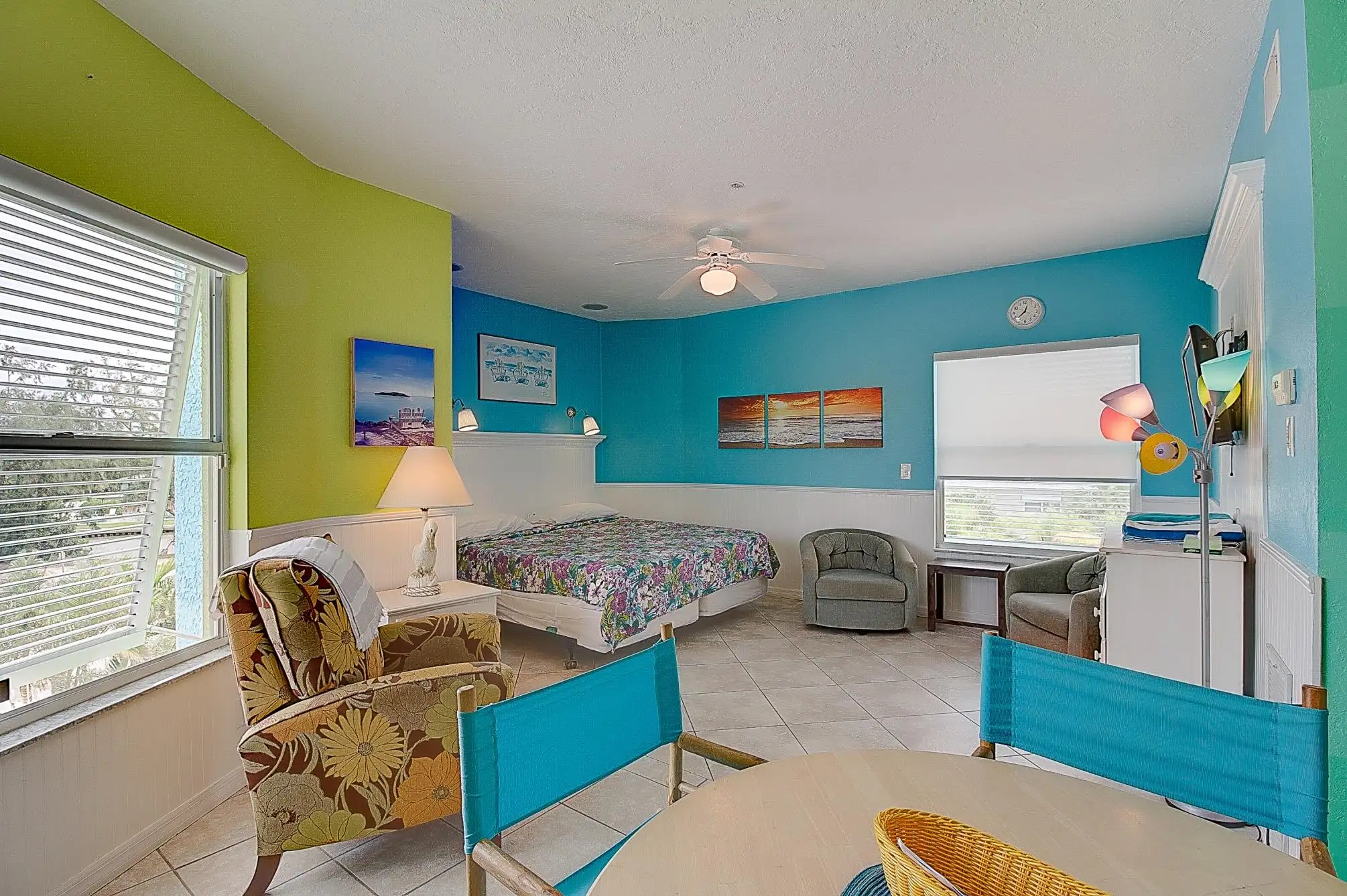 Very colorful beach vacation rental that is ideal for one or two guests. Heated pool and spa, all beach equipmeent supplied including a beach cart. Great Siesta Key location, great owner operated vacation rentals. No car needed, but free parking available for each apartment. One block from Village of Siesta Key and 100 yards from Siesta Key Beach at beach access #7. Book directly online 24/7.