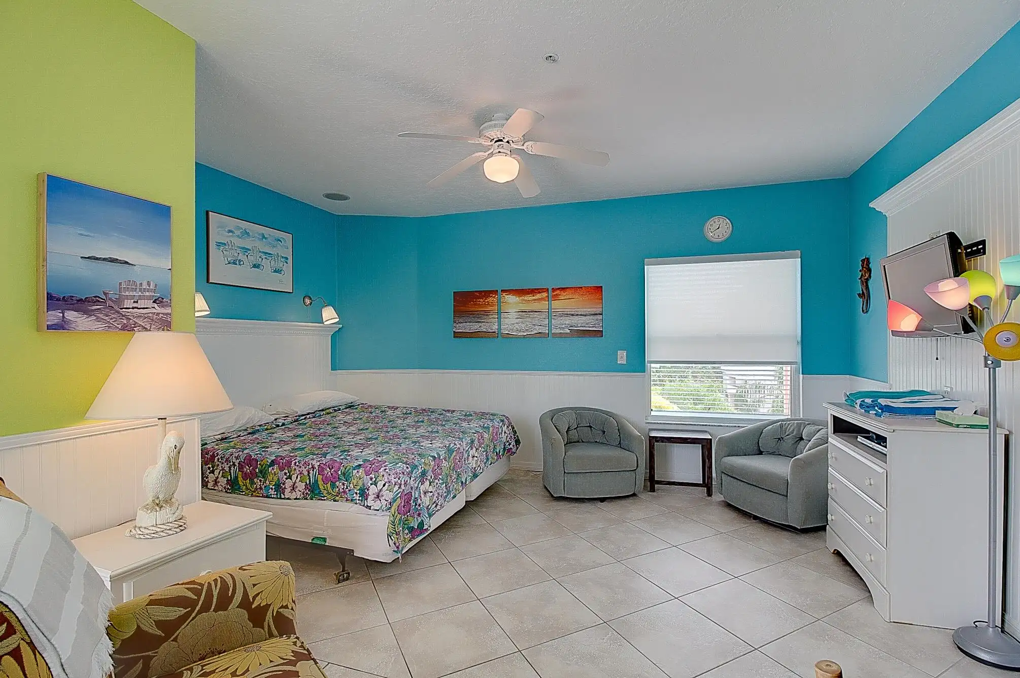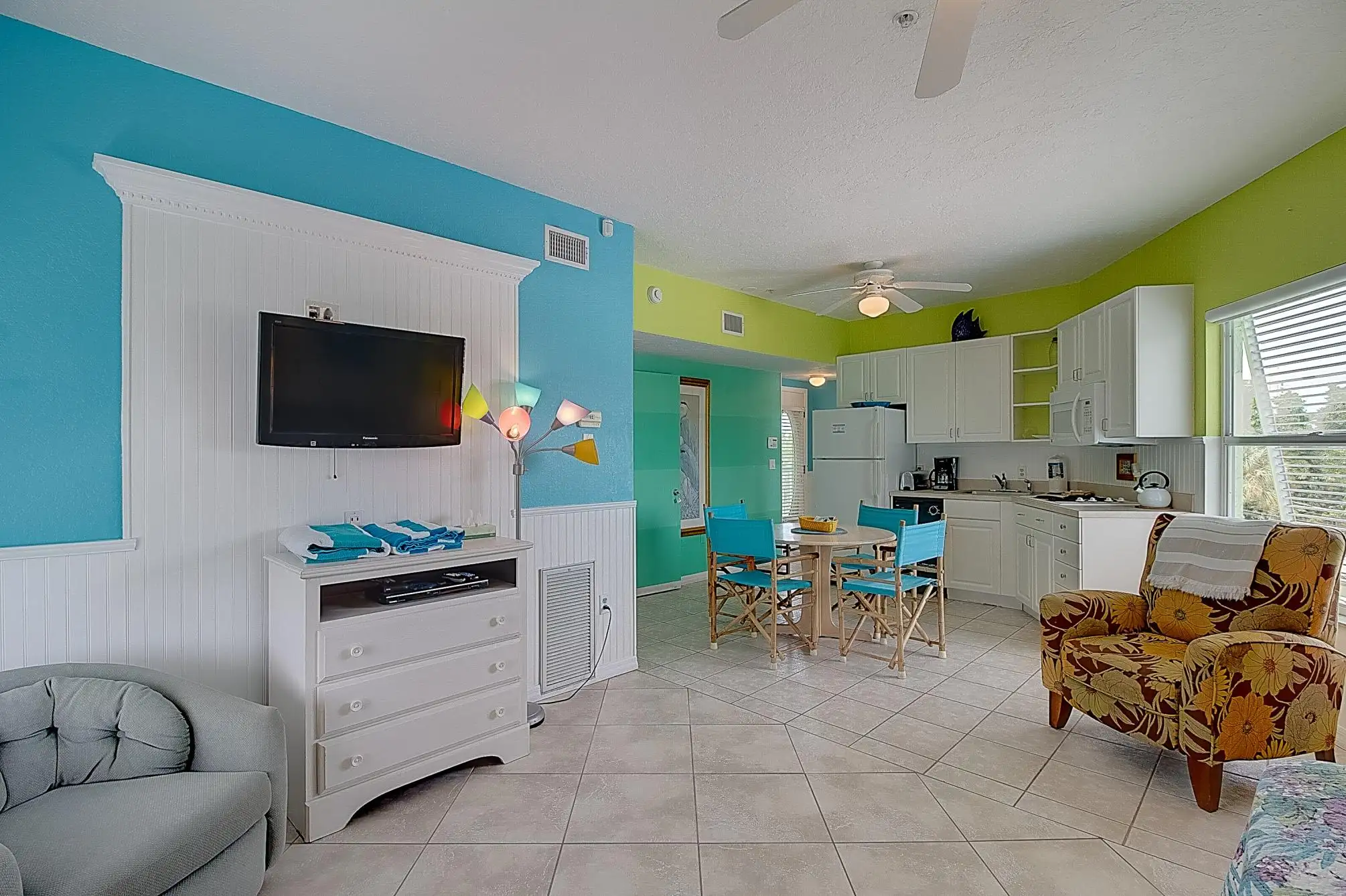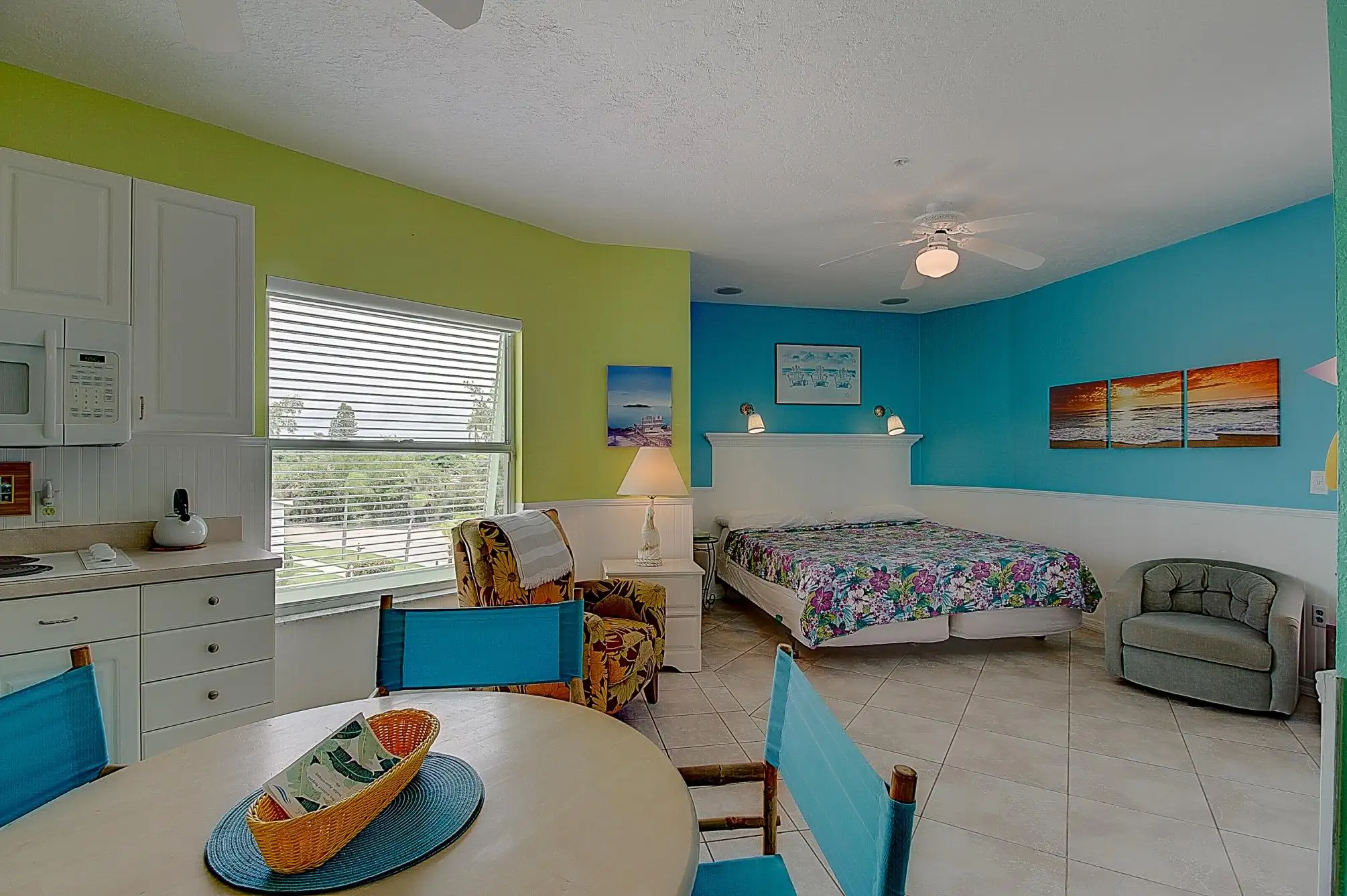 Very colorful beach vacation rental that is ideal for one or two guests. Heated pool and spa, all beach equipmeent supplied including a beach cart. Great Siesta Key location, great owner operated vacation rentals. No car needed, but free parking available for each apartment. One block from Village of Siesta Key and 100 yards from Siesta Key Beach at beach access #7. Book directly online 24/7.